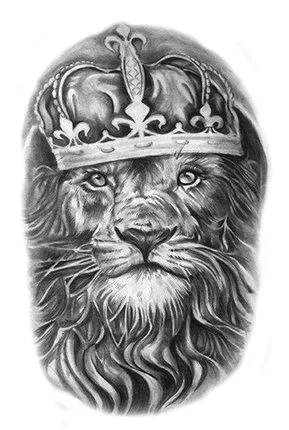 Choose this for a whimsical take on royalty. This lion king tattoo has a lion with a crown on his head.