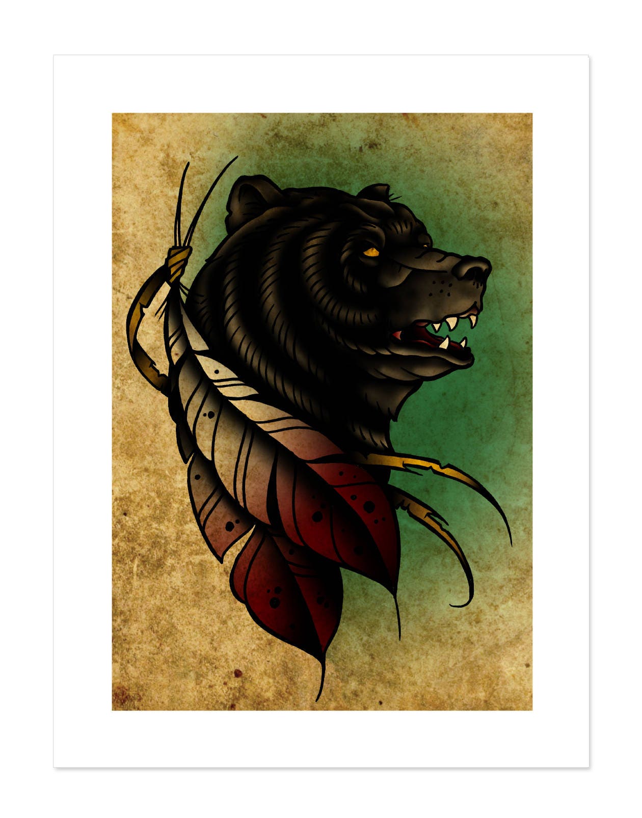 .His illustrative style is simply amazing, subjects form the traditional american and japanese. Panther fighting snake, traditional tattoo flash, old school, art print 16x12.