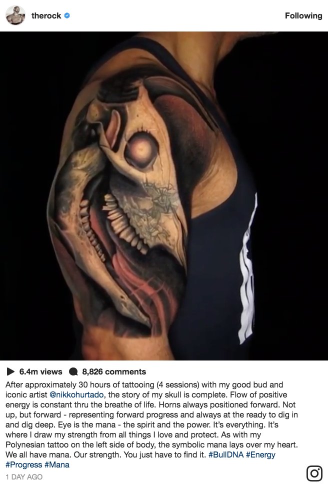 .A massive decaying bull skull. One of the most iconic tattoos in the history of wrestling is no more … because the rock has revealed that he had his brahma bull tat covered with a much more intricate piece.